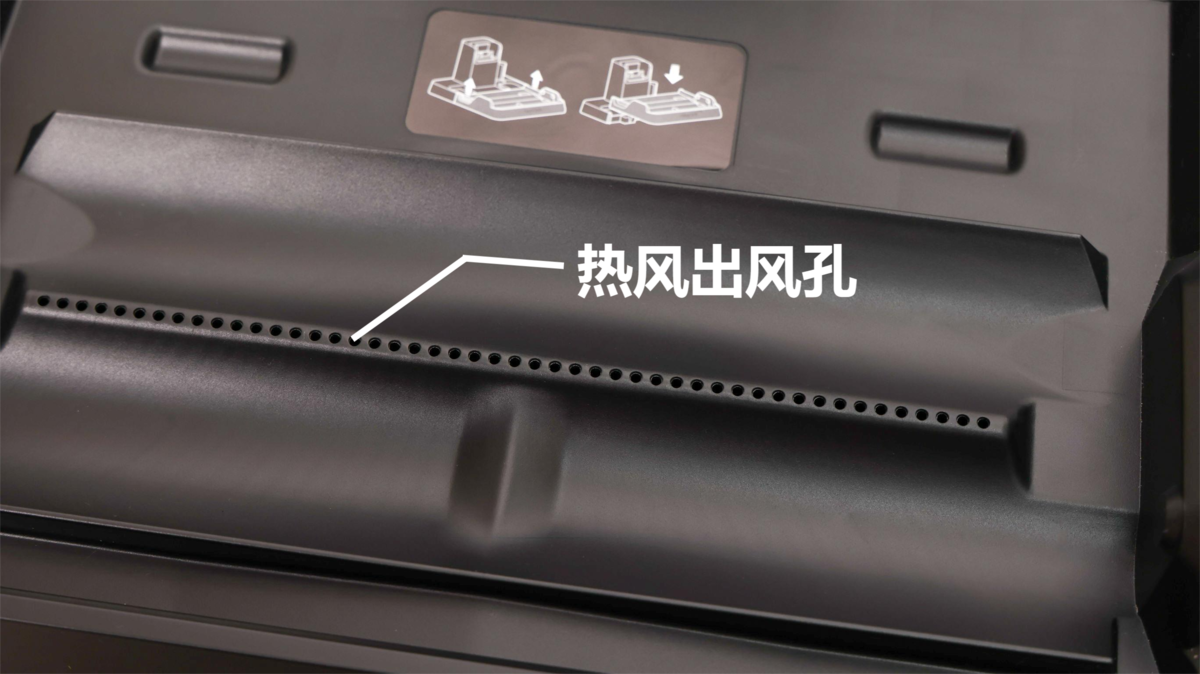 基座托盘有一排孔洞,烘干模式下可通过热风对滚刷进行快速烘干。同时基座底部托盘为可拆卸的设计,方便我们拆卸进行清洗且便于装回。