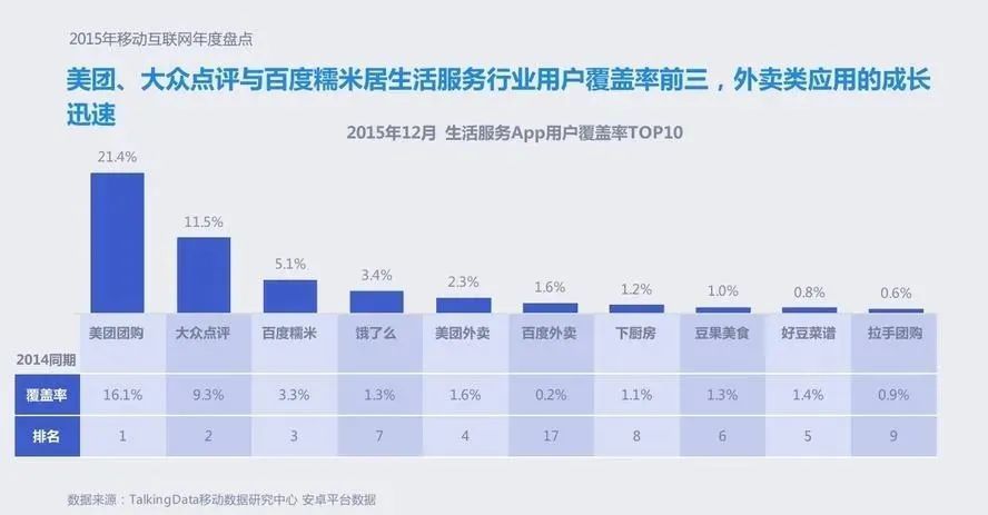 彼时百度在收购完糯米之后,已经完成了技术和品牌上的融合,同时也进行了对于糯米管理层的改造,原糯米CEO沈博阳离职,由百度系元老曾良出任糯米总经理。而糯米的市场份额也在这一年冲到了历史峰值,仅次于美团和大众点评。