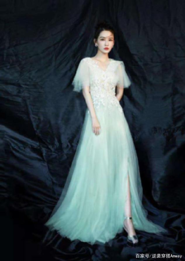 色彩:李沁选择了一条以绿色为渐变色调的的蕾丝纱质裙,整体层次分明又衔接得十分准确。微微发白的上半部分让人看起来非常的优雅大气,逐渐变成浅绿色的下半部分,能够很好地将整体造型的重心呈现出来。